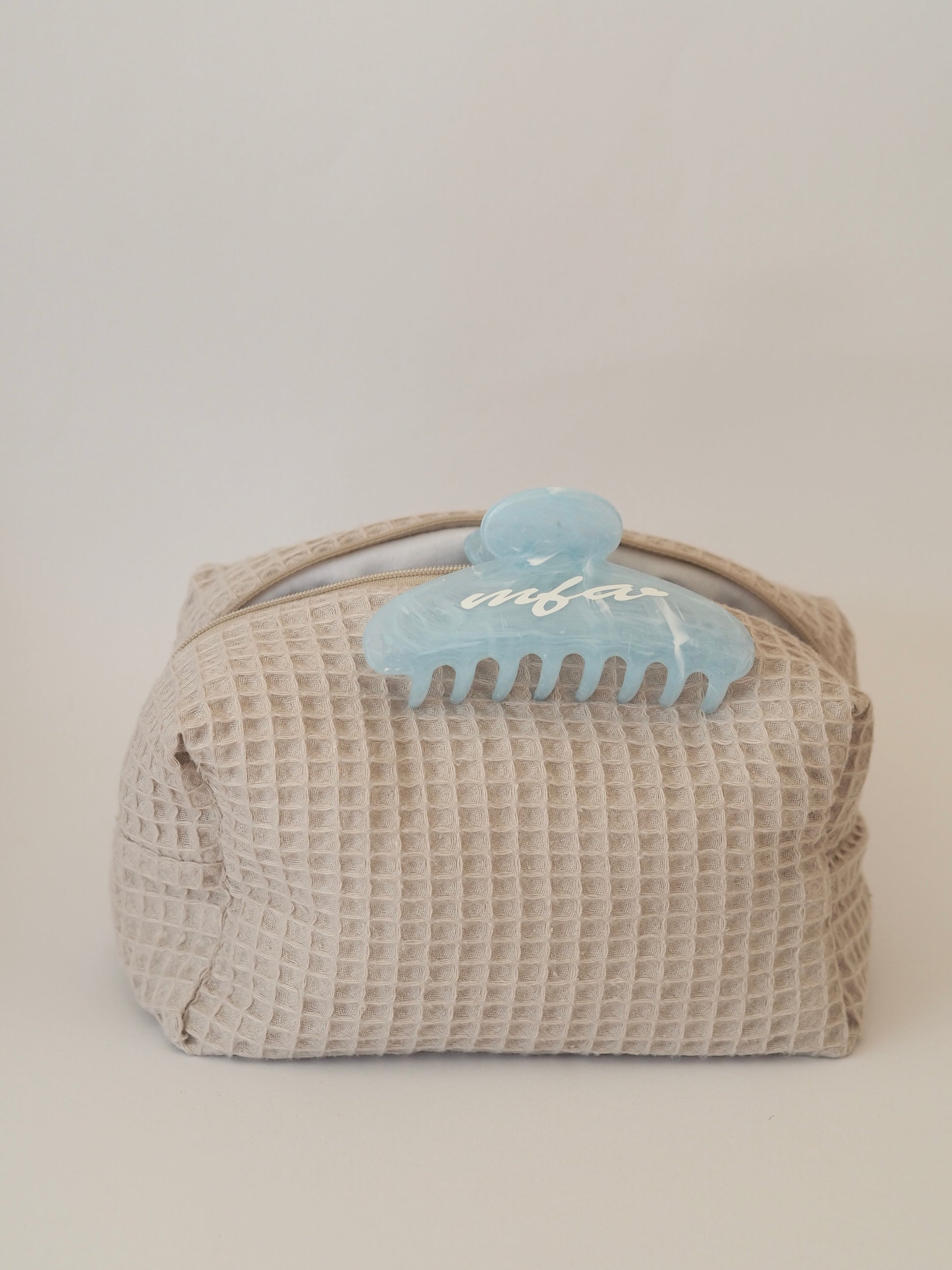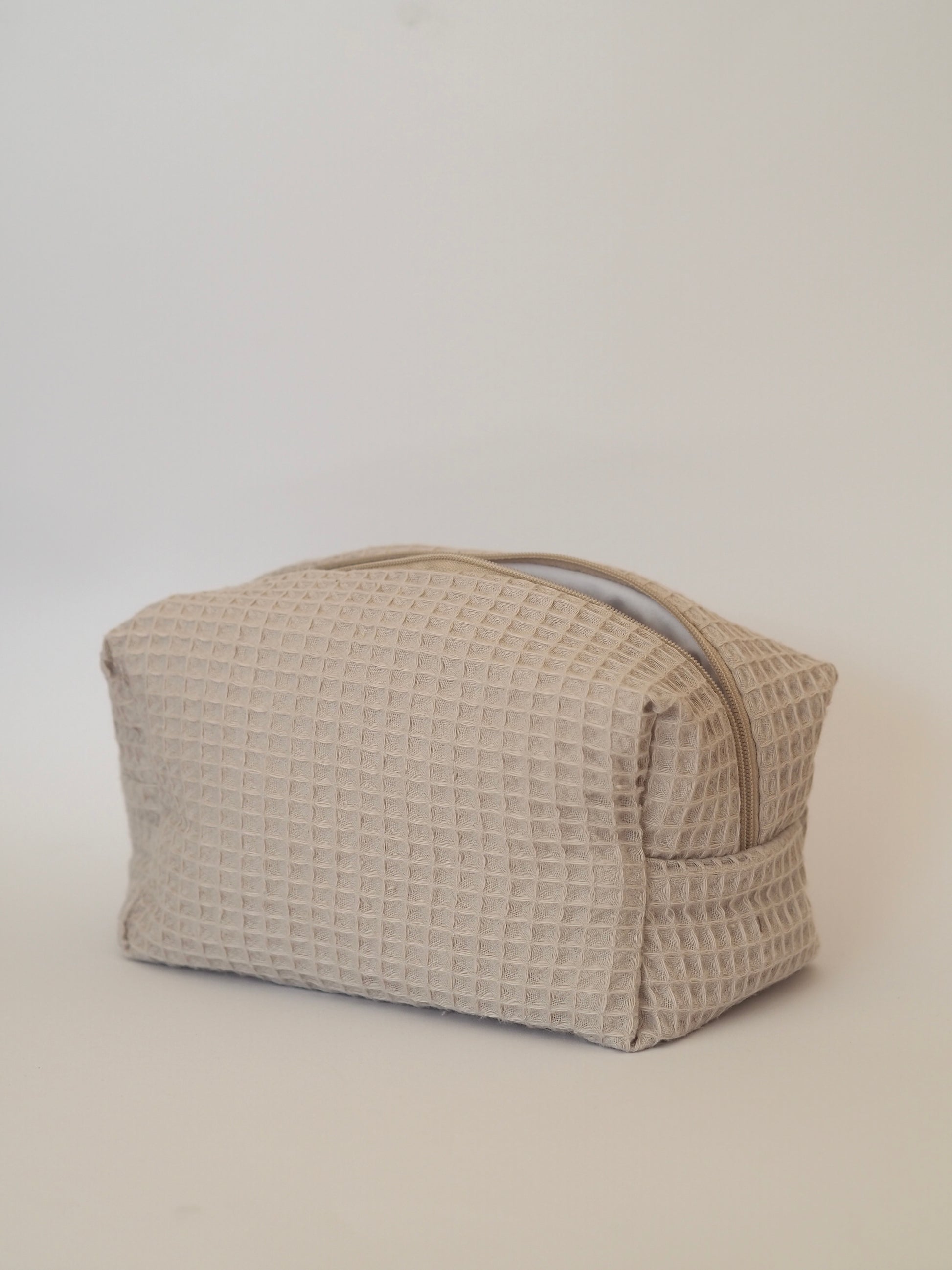 Dieses liebevoll handgefertigte Kosmetiktäschchen aus weichem Waffelpikee ist dein perfekter Begleiter für unterwegs. Ob auf Reisen, im Alltag oder im Klinikalltag – hier finden all deine Essentials wie Lippenpflege, Handcreme oder Make-up ihren Platz.